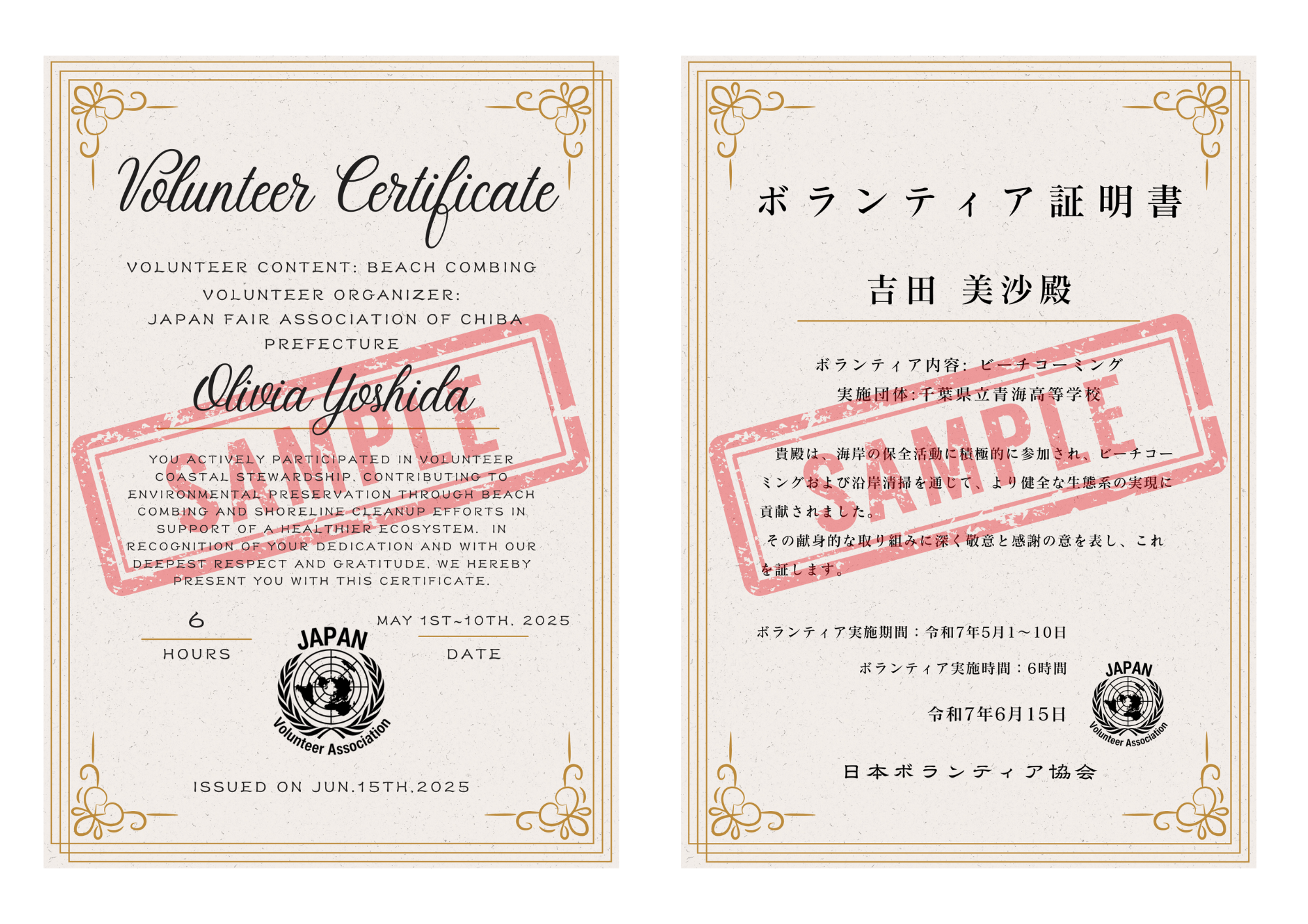 欧米では、ボランティア経験は入試や就職の場で重要視され、コミュニケーション力や異文化理解、社会貢献といった資質を示す実績として認められています。日本でも、そうした経験をきちんと見える形で示せることが、次の一歩への力になると信じています。